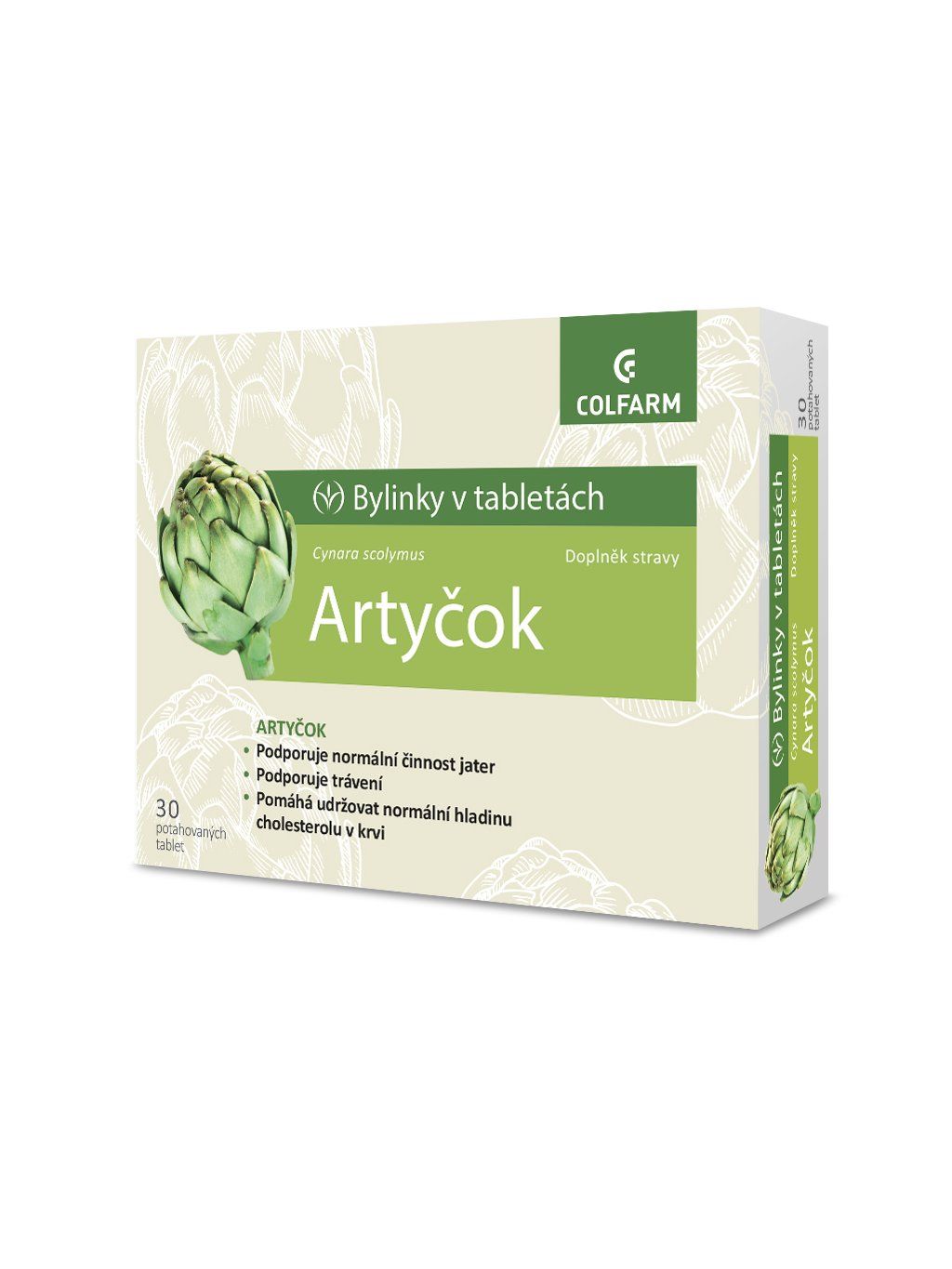 Doplněk stravy COLFARM Artyčok obsahuje 400 mg extraktu z artyčoku v jedné tabletě. Extrakt z artyčoku podporuje činnost trávicího systému (trávicí soustavy a střeva) a trávení tuků. Podporuje činnost jater a pročištění organismu. Přispívá k udržení normální hladiny cholesterolu a lipidů. Podporuje činnost oběhového systému a srdce, a slouží jako antioxidant.