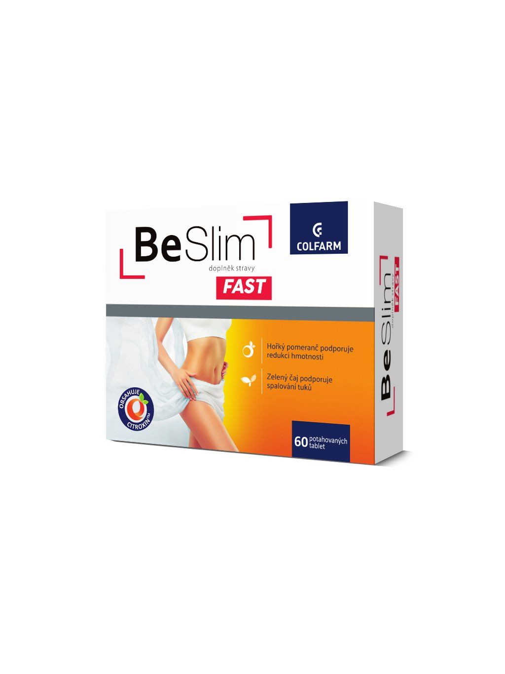 Doplněk stravy COLFARM BeSlim FAST s obsahem hořkého pomeranče, guarany a zeleného čaje napomáhá kontrole tělesné hmotnosti. Extrakt z kopřivy podporuje vylučování vody a pomáhá tak udržovat zdravou váhu a dobrý celkový stav. Zelená káva obsahuje cenné chlorogenové kyseliny. Přípravek je určen pro všechny dospělé, kteří si chtějí udržet správnou tělesnou hmotnost.