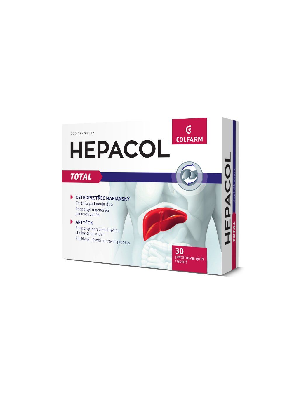 COLFARM Hepacol Total je doplněk stravy, který obsahuje kombinaci bylinných výtažků na dobré trávení a pročištění organismu (ostropestřec, artyčok) s cholinem a vitaminy skupiny B a vitaminem E. Ostropestřec a artyčok mají blahodárné účinky na játra a příznivě ovlivňují trávicí procesy. Vitaminy skupiny B napomáhají normálnímu energetickému metabolismu.